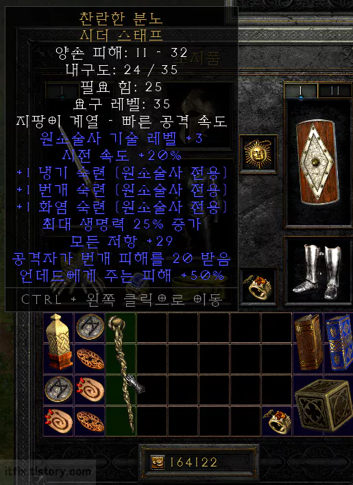 디아블로2 레저렉션 아이템 드롭 정보 - 시더 스태프