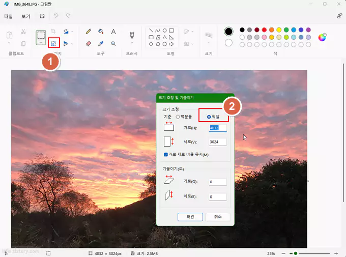 윈도우 사진 프로그램에서 이미지 크기 조절하는 방법