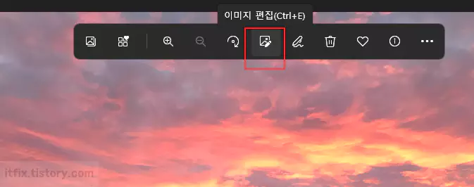 사진 앱에서 이미지를 불러온 다음 상단 메뉴의 이미지 편집 버튼을 클릭합니다.