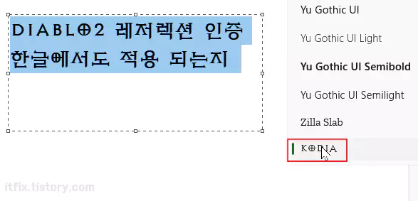아래의 이미지들에서 Diablo Light와 Exocet 폰트는 한글이 적용되지 않는 영문 폰트이지만 윈도우 11의 그림판에서 Kodia 디아블로 한글 폰트를 먼저 적용시킨 결과 마치 한글도 적용되는 것 처럼 만들어 졌습니다.