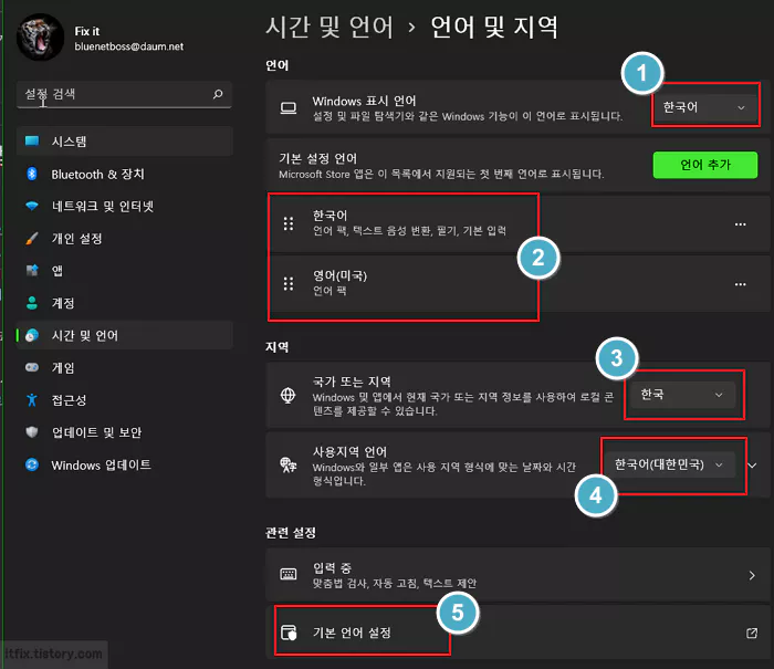 만일, 윈도우 기본 앱 등이 한글이 아닌 영어, 중국어, 일본어 등의 외국어로 표시되고 있다면 아래와 같은 윈도우 설정들을 살펴보시기 바랍니다.