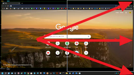 열려 있는 모든 창의 상단 바 부분을 마우스로 클릭한 다음 화면의 모서리나 좌우로 끌어 드래그하면 절반씩 화면 분할 기능을 이용해 작업할 수 있습니다. 두세 개의 창을 열고 작업해야 할 경우에는 매우 유용한 기능이지만 경우에 따라서는 이 기능 때문에 특정 액션이 방해받는 경우도 있을 수 있습니다.