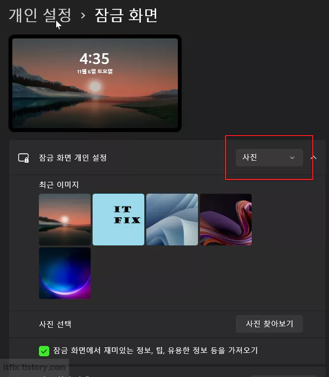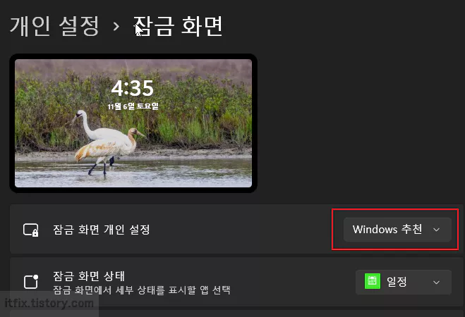윈도우 11 잠금 화면, 하나로 고정 또는 랜덤으로 설정하기