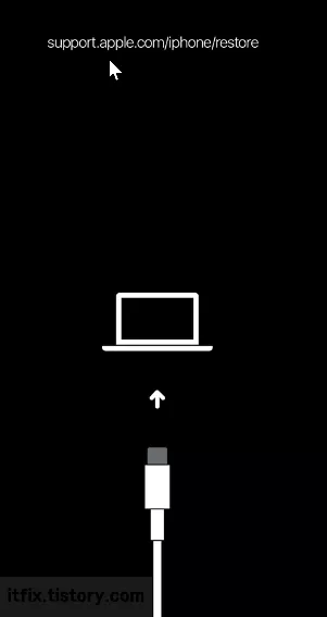 위의 이미지와 같은 복구 화면이 아이폰에서 떴다면 이제 측면 버튼에서 손을 떼고 PC 화면으로 이동합니다.