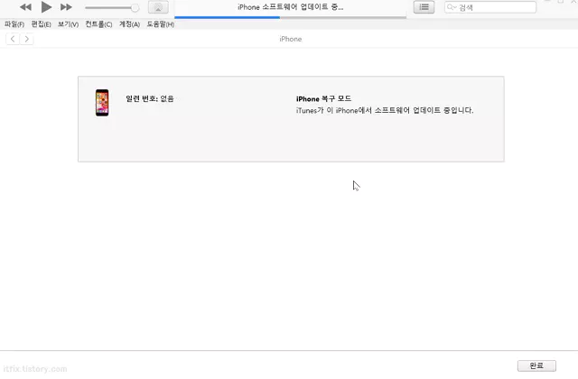 이후 아래의 이미지에서처럼 PC의 아이튠즈에서 IOS 업데이트를 다운로드해 아이폰에 업데이트를 적용하는 일종의 업데이트를 이용한 복구 과정이 진행되게 됩니다.