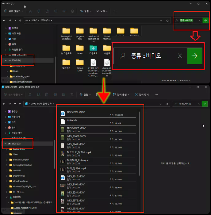 PC의 특정 드라이브에 있는 모든 동영상 찾는 방법