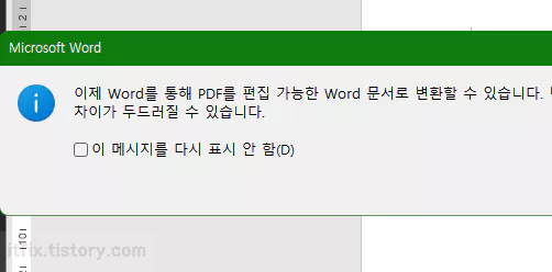 기본적으로 MS 워드는 텍스트 편집에 특화된 프로그램이므로 원본 PDF에 그래픽 요소가 많다면 변환에 더 많은 시간이 소요되고 원본과의 동일성 정도가 떨어질 수 있습니다.