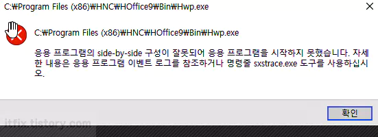 한컴 오피스 Side by Side, sxstrace 오류 해결 방법