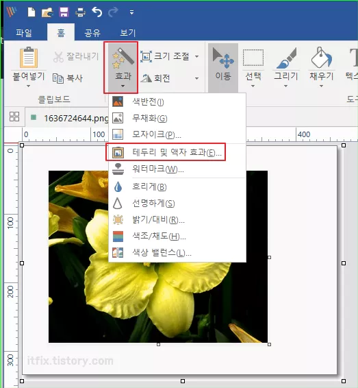 테두리 및 액자 효과를 클릭해 테두리선의 옵션 세부 설정을 진행합니다.