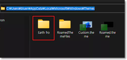 이 작업이 쉽지 않은 경우 파일 탐색기를 열고 아래의 주소를 복사한 다음 탐색기의 주소창에 붙여 넣기 하고 엔터키를 누르면 외부 테마가 보관된 폴더로 이동하게 됩니다.