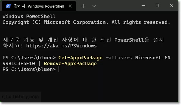 Get-AppxPackage -allusers Microsoft.549981C3F5F10 | Remove-AppxPackage