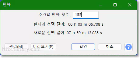 위에서와 같은 과정을 거치면 짧은 사운드 클립이라도 반복 재생 형식의 아주 긴 파일로 만들 수 있습니다.