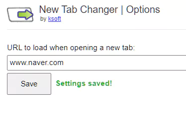 마지막으로 뉴탭 체인저 페이지에서 네이버 주소를 써주고 Save 버튼을 눌러 주면 모든 작업이 끝납니다.