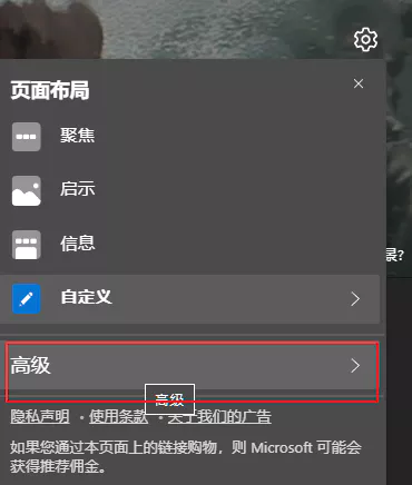 새 탭을 눌렀을 때 나오는 페이지의 우측 상단에 있는 톱니바퀴 아이콘을 누르고 가장 아래쪽의 고급을 클릭합니다.
