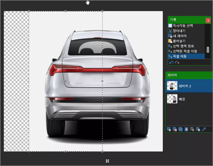 ① e-tron Sportback의 후면 이미지를 불러온 다음 제거할 중앙 부분을 수직으로 적당히 영역 선택합니다.