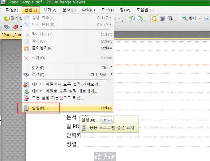 3. 상단 메뉴의 편집 > 설정을 클릭합니다.