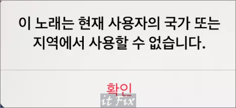 아이폰, '이 노래는 현재 사용자의 국가 또는 지역에서 사용할 수 없습니다.' 오류