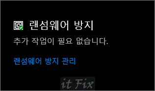 아래의 이미지는 랜섬웨어 방지 해제후의 보안센터 건강상태입니다.