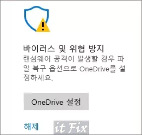 윈도우11 보안 바이러스 및 위협 방지 OneDrive 관련 느낌표 제거