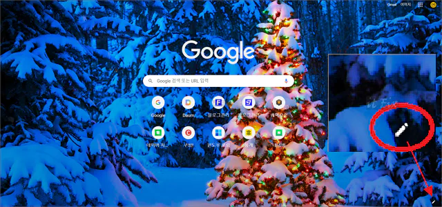 크롬 브라우저의 첫 화면은 사용자가 원하는 배경 이미지 또는 색상을 선택하여 구성할 수 있으며, 하단에 있는 바로가기는 최대 10개까지 사용자가 직접 구성하거나 또는 자주 가는 사이트가 자동으로 등록되도록 설정하는 것이 가능합니다. 이러한 크롬 시작 페이지의 설정 편집은 우측 하단에 있는 연필 모양의 아이콘을 클릭해 설정할 수 있습니다.