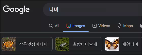 구글의 검색 결과에서 검색창 바로 아래의 메뉴중 이미지를 클릭합니다.