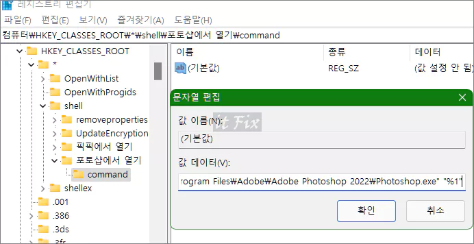 마우스 우클릭 메뉴에 '포토샵에서 열기' 메뉴 만들어 보기