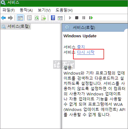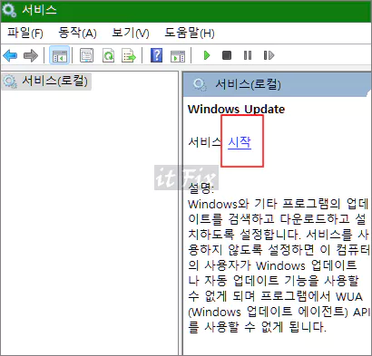 다음으로 Windows Update 서비스 '시작' 글씨를 눌러 줍니다.