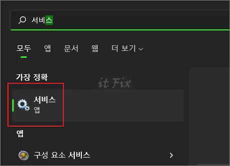 윈도우 작업 표시줄의 시작 버튼 옆에 있는 검색 상자에 서비스라고 입력한 다음 서비스 앱을 실행합니다.
