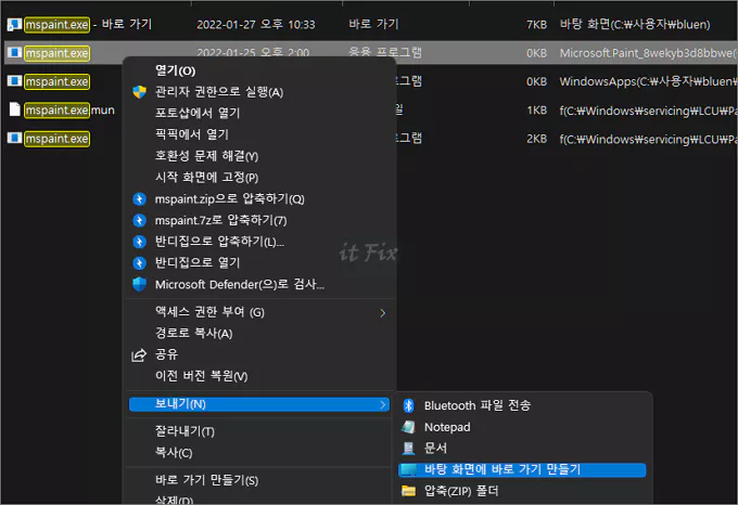 윈도우 11에서 바탕 화면에 그림판 바로가기 아이콘 만들기