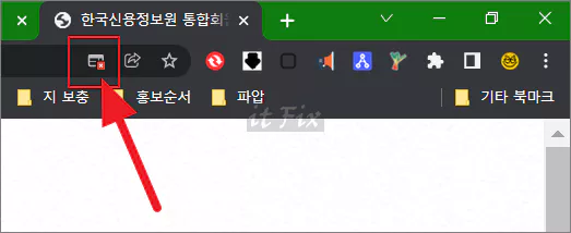 크롬 브라우저를 통해 은행이나 뱅킹 사이트 등과 같은 페이지에 접속하면 보안 프로그램 설치 팝업 창이 뜨게 되며 보통은 크롬의 팝업 차단 기능이 작동해 차단되게 됩니다. 이때 주소 표시줄의 우측 끝 부분을 보면 아래의 이미지에서와 같은 현재 페이지에서 팝업이 작동했고 크롬에서 차단했음을 알리는 아이콘이 떠있게 됩니다.