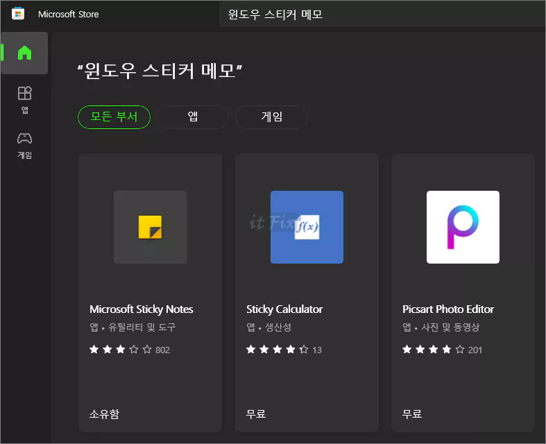 삭제된 스티커 메모 앱을 다시 설치하고 싶은 경우에는 MS 스토어를 이용합니다.