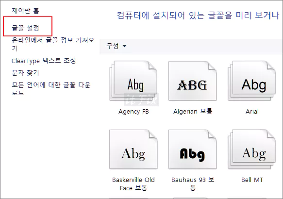 왼쪽 메뉴중 가장 위쪽에 있는 글꼴 설정 메뉴를 클릭합니다.
