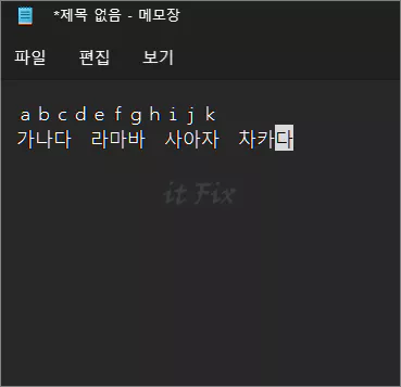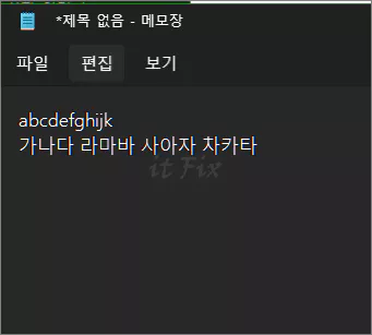 이제 메모장을 다시 열고 영문 및 한글을 테스트 타이핑해 보면 기본값대로 잘 타이핑되는 것을 확인할 수 있습니다.