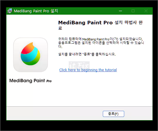 위에서의 다소 묘하게 느껴질 수 있는 설치과정을 지나 순조롭게 설치가 진행되었다면 아래와 같이 설치 완료 메시지 창을 볼 수 있게 됩니다.