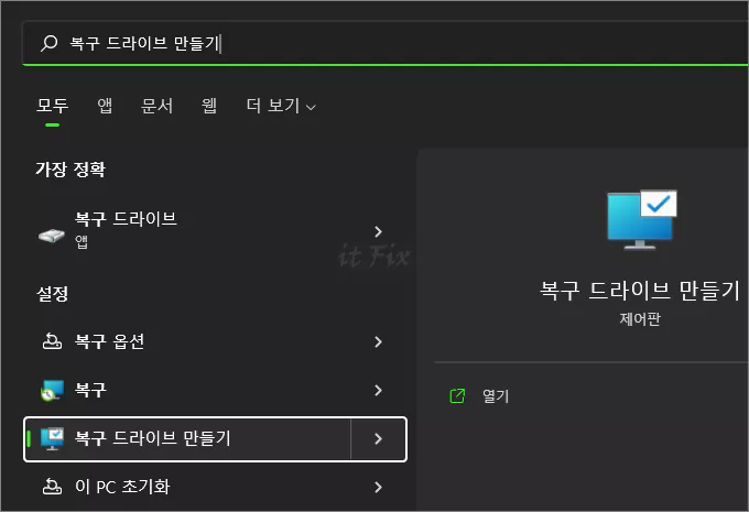 윈도우 10 또는 11에서 복구 미디어 만들기