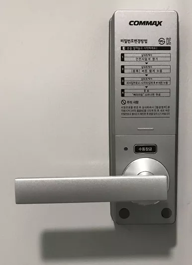얼마 전 이사한 빌라의 도어락이 이름이 COMMAX 제품이었습니다. 그런데 문제는 밤 시간에 도어락 소리가 너무 크게 들려서 신경 쓰이는 문제가 있었습니다. 매뉴얼이 비치되어 있지 않아 도어락 안쪽 실내 부분을 유심히 살펴보았지만 건전지 또는 비밀번호 교체 방법에 관한 설명만 있었으며 도어락의 음량 조절 부분에 대한 설명은 나와 있지 않았습니다.