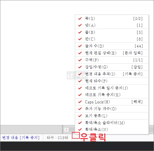 이상으로 한컴 오피스 한글 워드의 가장 하단에 위치한 상황 선의 해제, 보기 등의 설정에 관하여 알아 보았습니다.