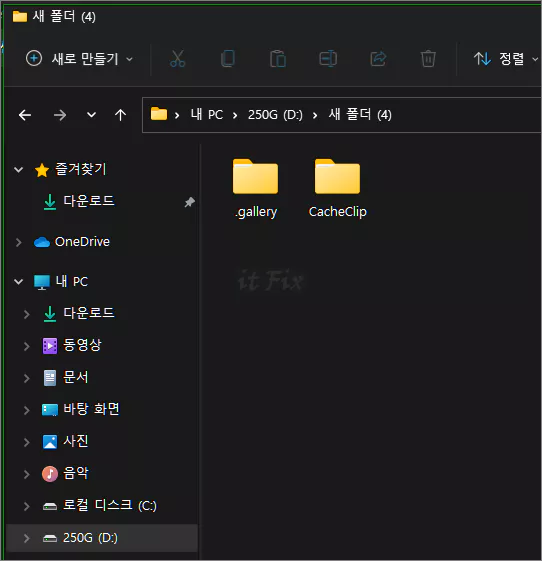 지정해 주었던 새로운 경로에 .gallery 폴더와 CacheClip 폴더가 잘 생성되어 있는 것을 확인할 수 있습니다.