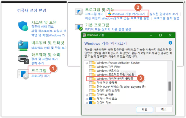 결론적으로 구글 플레이 게임즈와 다른 앱 플레이어를 동시에 모두 사용하고 싶다면 그때마다 옵션을 키거나 끄고 PC를 다시 시작해야 합니다. 이 옵션은 제어판을 열고 프로그램 > Windows 기능 켜기/끄기 > Windows 하이퍼바이저 플랫폼 옵션을 체크하거나 체크 해제하여 하이퍼바이저 플랫폼 기능을 적용 또는 해제합니다. 각각의 변경 적용은 그때마다 PC를 다시 시작해야 적용됩니다.