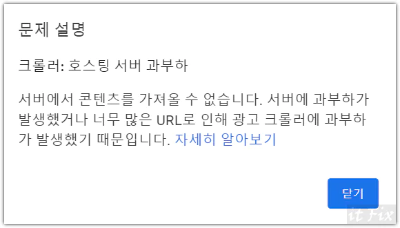 서버에서 콘텐츠를 가져올 수 없습니다. 서버에 과부하가 발생했거나 너무 많은 URL로 인해 광고 크롤러에 과부하가 발생했기 때문입니다.