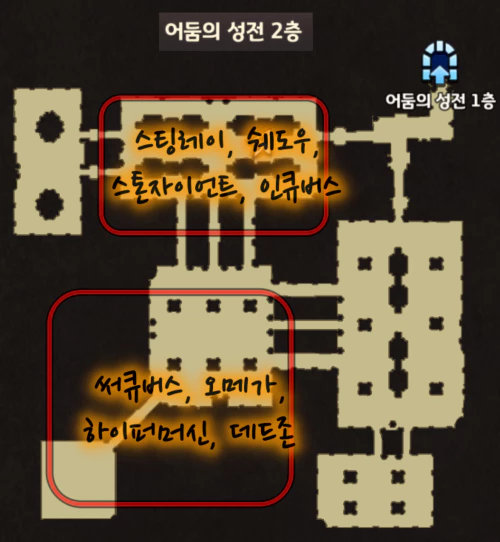 기타, 어둠의 성전 2층에는 클랜칩이나 보스 몬스터가 존재하지 않습니다.
