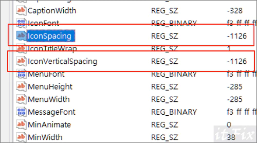 3. 우측으로 보이는 값들 중 IconSpacing은 가로 간격값을, IconVerticalSpacing은 세로 간격 값을 나타내는데, 두 값을 수정해 줍니다.