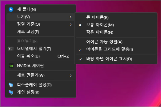 윈도우 바탕 화면 아이콘을 가로로 정렬하는 방법