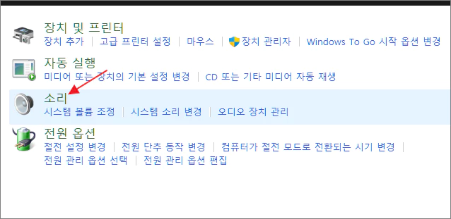 2. 소리 부분을 클릭합니다.