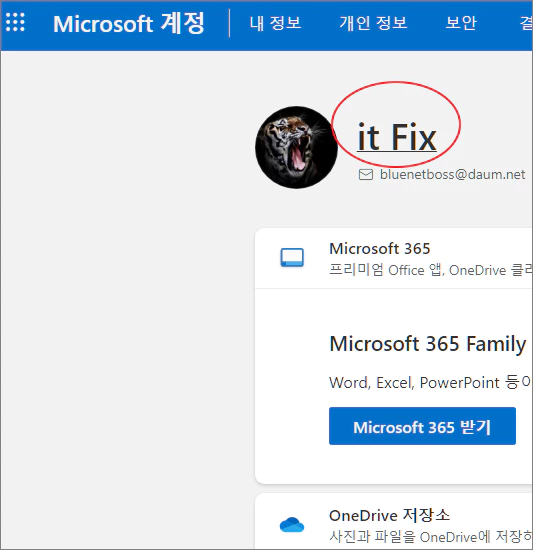 내 계정 관리를 클릭하게 되면 웹 브라우저를 통해 자신의 마이크로소프트 계정 관리 페이지로 이동하게 됩니다.