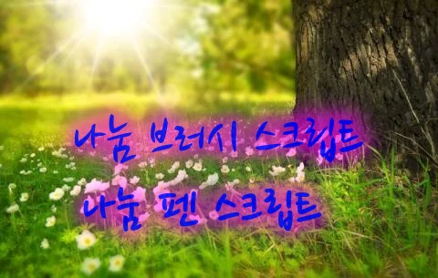 - 이제 폰트 추가 작업이 끝났으므로 테스트를 위해 임의의 이미지를 불러온 다음 삽입 > 텍스트를 선택한 다음 폰트 설정에서 Nanum Pen 위에 있는 Nanum Brush Script를 선택해 주고 타이핑하면 됩니다.