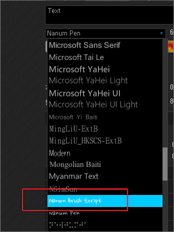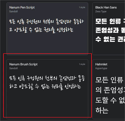 - 상단의 언어를 한국어로 변경하면 한글 폰트 목록이 나옵니다.