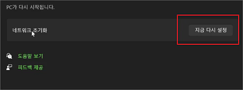 다음 페이지에서 지금 다시 설정 버튼을 클릭하고 시스템을 다시 시작합니다.