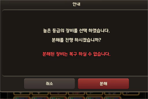 고급 템 분해가 이루어지고 난 다음 다시 분해 설정을 원상 복귀시켜 놓으면 간단히 문제를 해결할 수 있습니다.