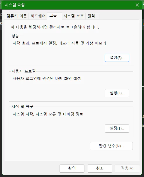 하지만, 현재에도 이전의 시스템 속성 창은 여전히 살아 있습니다.